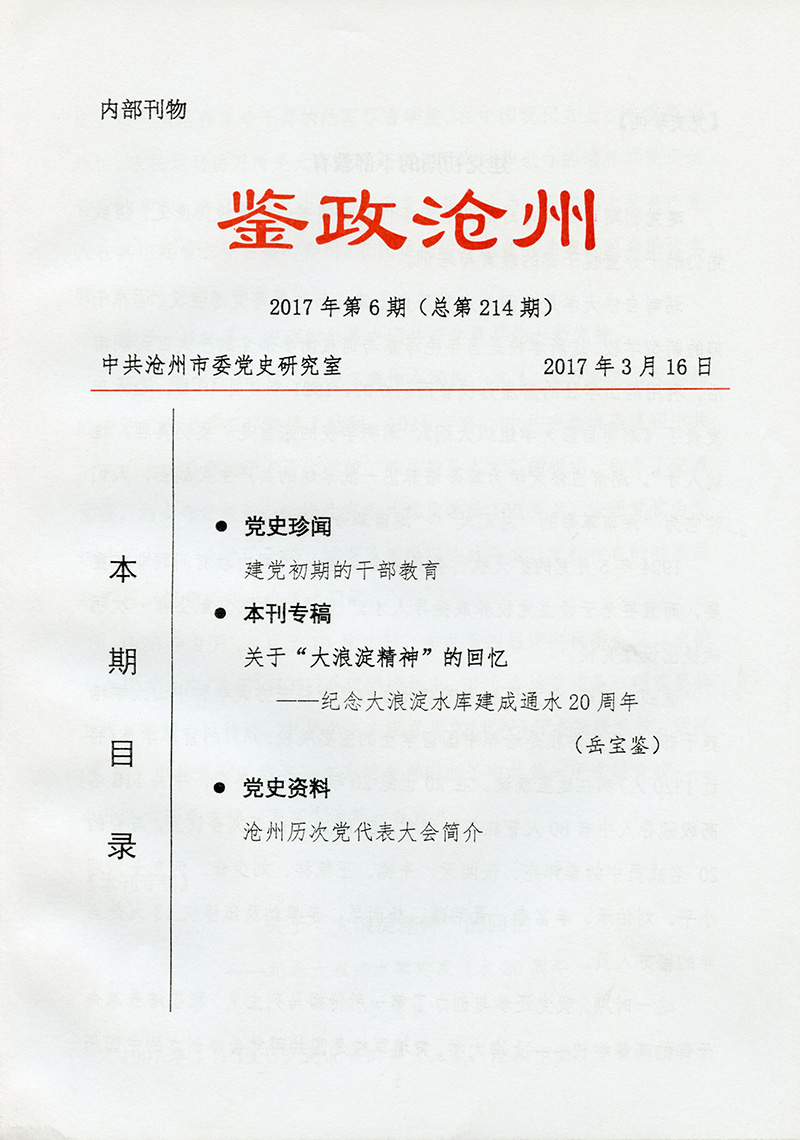 1997年1月19日,河北省的重点工程,沧州市委、市政府的“鱼水工程”,沧州全市人民瞩目的大浪淀水库竣工蓄水了。从此,结束了沧州市区40多万人长期饮用高氟水的历史。这一宏伟工程的建成, 我们收获的不仅仅是水库,而且还创造了“大浪淀精神”。水库建成通水后,当时的省委书记、省长代表省委、省政府给沧州市委、市政府发来的《贺信》中指出:“在水库建设中,你们带领广大建设者,克服种种困难提前完成了建设任务,不仅取得了丰硕的物质成果,而且以实际行动凝结成‘想民为民、自力更生、团结协作、敬业奉公’的‘大浪淀精神’,成为推进改革、发展、稳定的强大精神动力”。大浪淀精神,是沧州市委、市政府领导沧州人民,特别是广大水库建设者的伟大实践,省委、 省政府的《贺信》给予了高度评价和总结。这十六个字的大浪淀精神,每一个字都凝结着水库领导者和建设者们的心血和汗水。