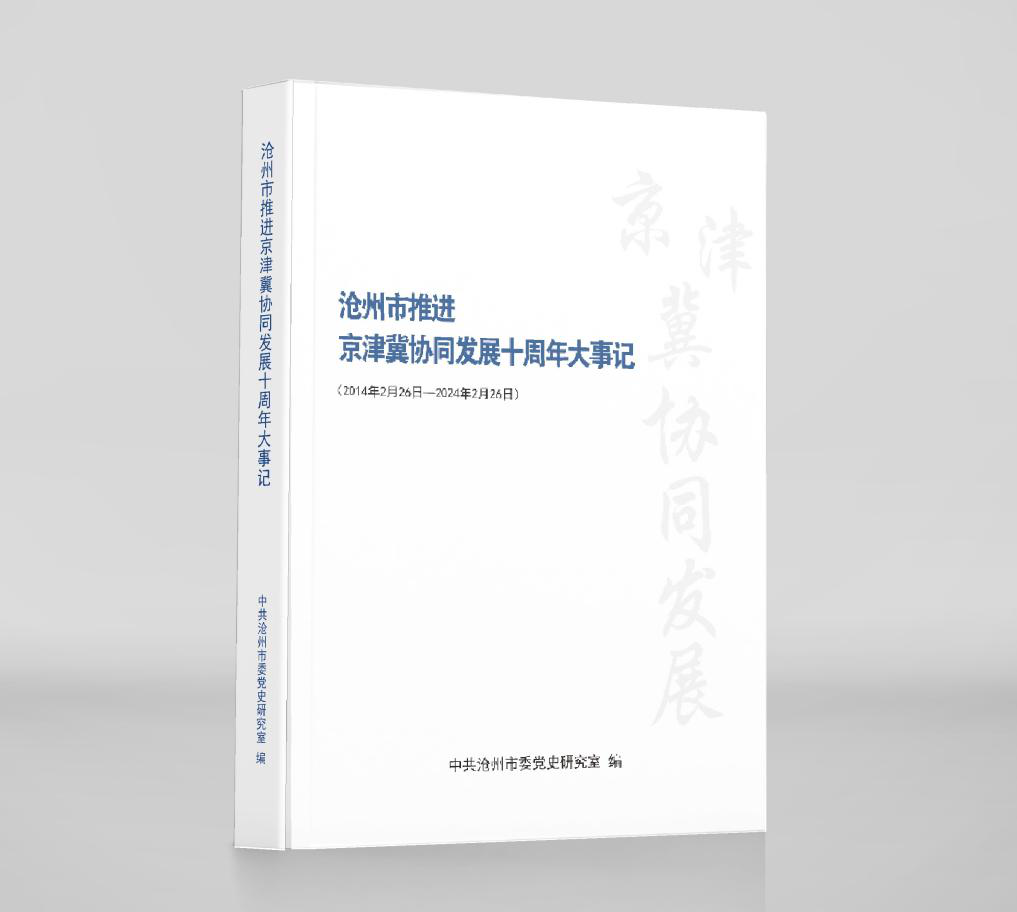 近日,由中共沧州市委党史研究室精心编撰的《沧州市推进京津冀协同发展十周年大事记(2014年2月26日—2024年2月26日)》一书内部印行。该书共17万余字,辑录55篇附录,采用图文并茂的形式,总结、展现了京津冀协同发展重大国家战略实施十年来,在市委、市政府的坚强领导下,沧州结合自身特点,发挥独特优势,抢抓机遇、乘势而上,全方位多领域推动京津冀协同发展的奋斗历程和取得的成绩。