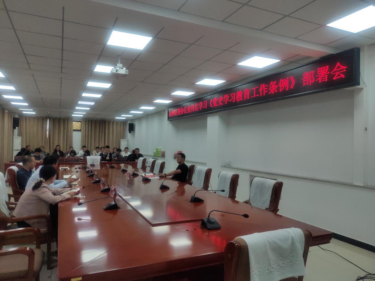 近日,为贯彻落实各级会议要求,更好发挥党史资政育人的作用,助推河北党史高质量发展场景沧州实践取得新成效,运河区委办公室组织召开运河区委办公室传达学习《党史学习教育工作条例》部署会。区委办常务副主任杨传志主持会议并讲话。会议传达学习了全省、全市党史研究室主任会议及市委、区委常委会会议精神,要求积极做好对《党史学习教育工作条例》的学习研讨,做到原原本本学、逐章逐条学、联系实际学,推动党史学习教育常态化长效化。