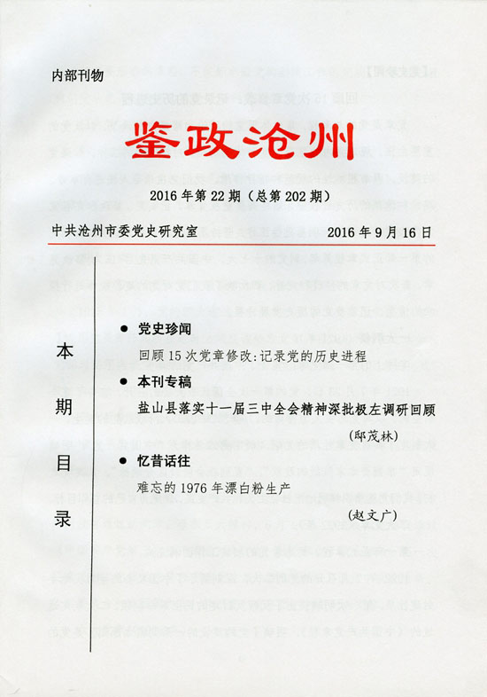 盐山县落实十一届三中全会精神深批极左调研回顾
