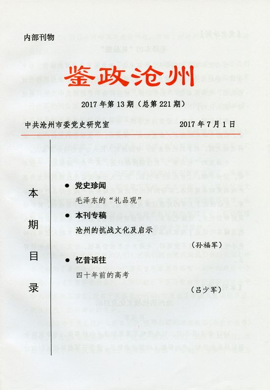 (作者系沧州军分区军事志办公室主任、沧县武装部原政委)