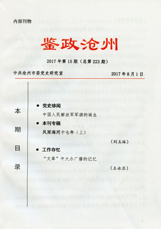 1969年,“文革”进入“斗、批、改”阶级,市广播站的领导编辑和业务骨干都进了市“五七”干校。2月22日,解放军驻沧州市支左办公室申政委和市革命委员会政工组负责人田杰,找我谈话。申政委开门见山地说:“永乐同志,市广播站的领导和编辑及业务骨干都去了‘五七’干校毛泽东思想学习班,市的广播工作到了将要停摆的紧要关头,组织决定调你去广播站,担起领导和编辑的重任,你有什么意见?”还没等我表态,田杰紧接着说:“这是临危任命,说完明天就得上班,没有考虑的余地,领导相信你能够把工作干好。只能干好不能干坏,宣传毛泽东思想是非常重要而光荣的任务,我陪申政委亲自找你谈话,你有什么意见?”面对这突如其来的工作调动和艰巨任务,我没有思想准备,只能机械地回答:“服从组织决定,努力干好工作。我要干不了,快来人换我,别使工作受损失。”我的表态领导满意。2月23日,我就到市广播站上班了。