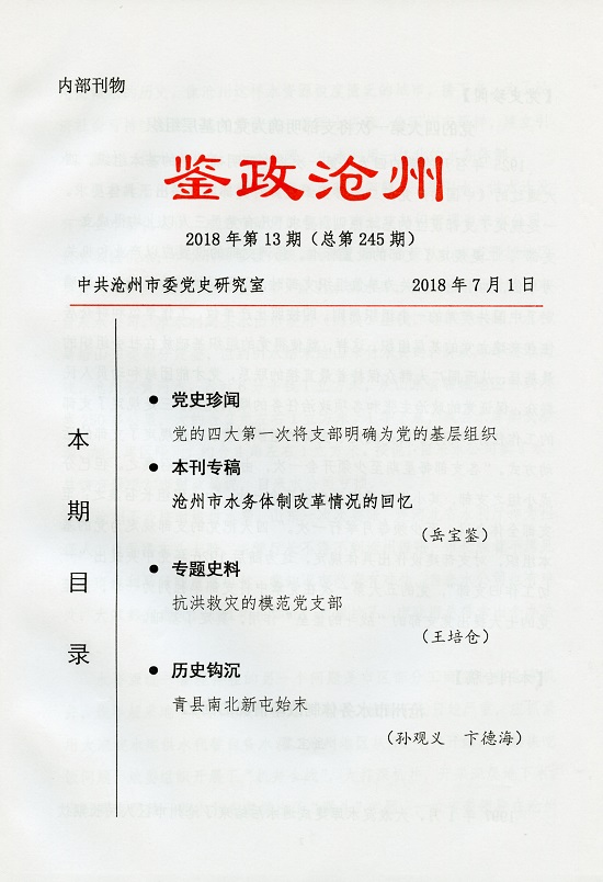 1963年,献县城关公社西武庄大队受灾后,党支部带领全体党员、干部在最艰险的时候,奋不顾身地抢救社员的生命财产;在生产救灾斗争中,他们顽强不屈,依靠集体、依靠群众战胜了一个又一个困难。在公社抗灾斗争评比会议上,西武庄党支部被评为模范党支部。