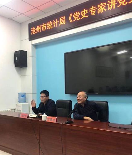 4月9日下午,市委党史研究室主任刘德峰受邀到市统计局开展沧州党史专题讲座。市统计局党组书记赵宝良主持讲座,局机关全体党员干部近80人参加学习。
