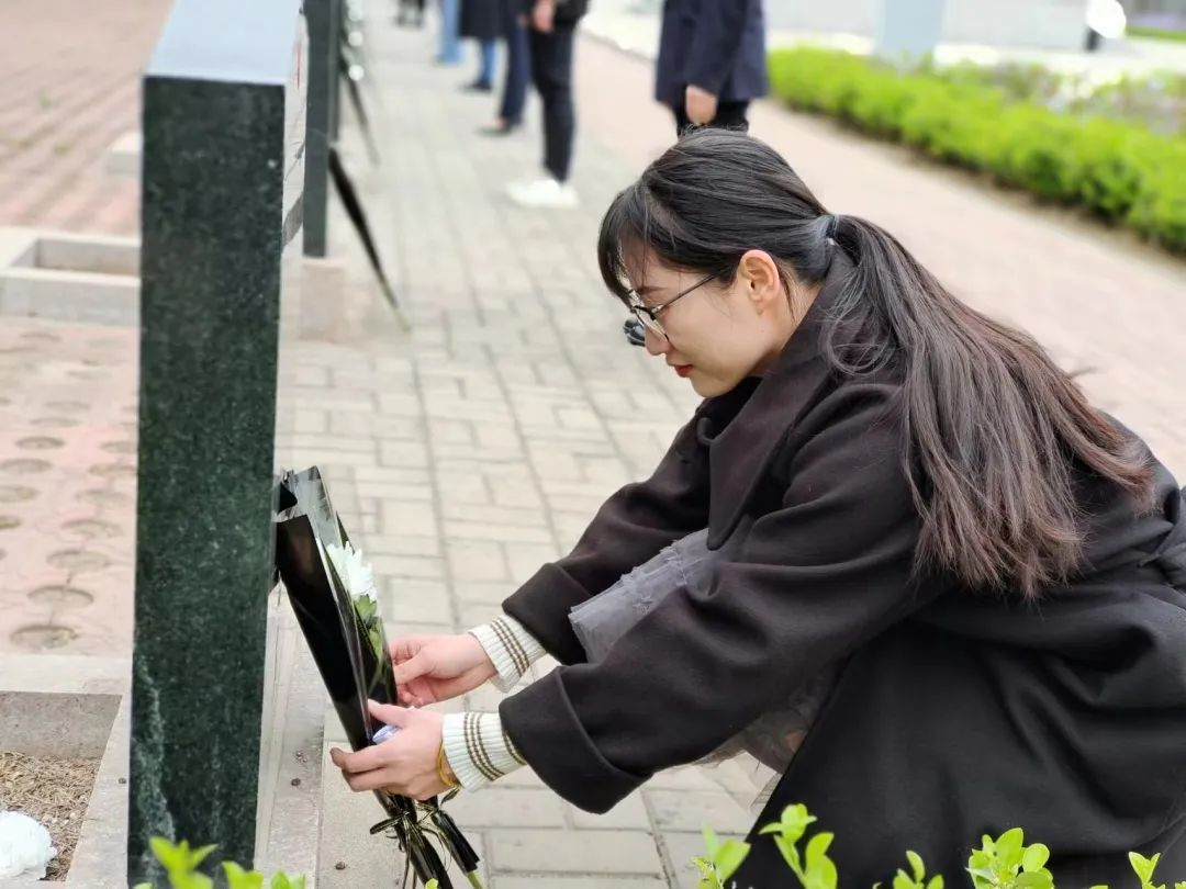 春风和煦,松柏挺立。全体人员肃穆而立在烈士纪念碑前,高唱国歌《义勇军进行曲》,并面向烈士纪念碑默哀、向革命烈士敬献花篮,追忆革命烈士为民族独立与解放、为中国革命和建设事业而英勇献身的英雄事迹。