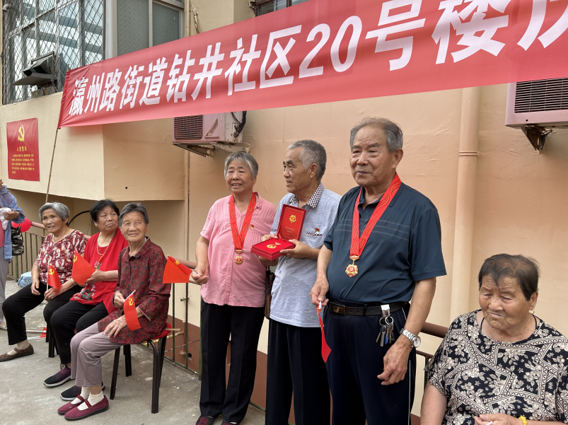 活动中,组织老党员们重温入党誓词,为老党员颁发纪念章,同时,听老党员们讲党史故事,体会宝贵的红色精神财富。