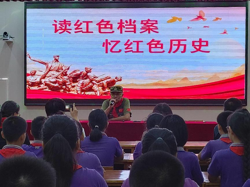 活动中,作为历史亲历者的王建明老人为学生们讲述红色历史,追忆其过往经历,并展示部分纪念徽章。同时,宣讲过程中还邀请部分学生发言,让孩子们自由抒发心中的英雄梦想。