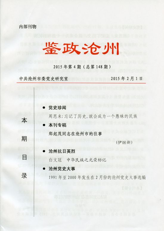 原省顾委委员、承德市委第一书记郑起茂同志,1973年底调来沧州市。在“文革”“左”的乱局中,行政11级、主政承德多年的老书记起茂同志开始被任命为沧州市委副书记、市革委副主任。随着干部政策的逐步落实,到1977年5月被任命为沧州市委第二书记,1979年才被任命为沧州地委书记(时地委设有第一书记、第二书记)兼沧州市委第一书记。1982年10月调到地委任职。起茂同志在沧州市工作历时9年,这期间我一直在市委办公室工作。虽然时隔30余年,起茂同志在沧州市许多感人的往事,却依然历历在目,难以忘怀。