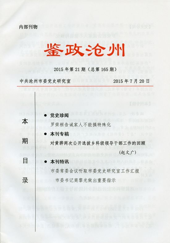 时光飞逝,弹指一挥间,我们又站在了新的历史起点上。“物有甘苦,尝之者识;道有夷险,履之者知”。作为一个黄骅两次公开选拔干部的亲历者、参与者,回首这段曾经的往事,仍觉身临其境、倍感振奋激动,并引发如下思考: