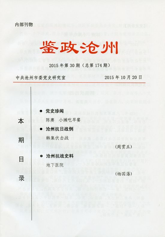 (作者:杨国藩 系泊头市西辛店乡军王庄人,原地下医院负责人,建国后任唐山市柏各庄农场党委书记等职)