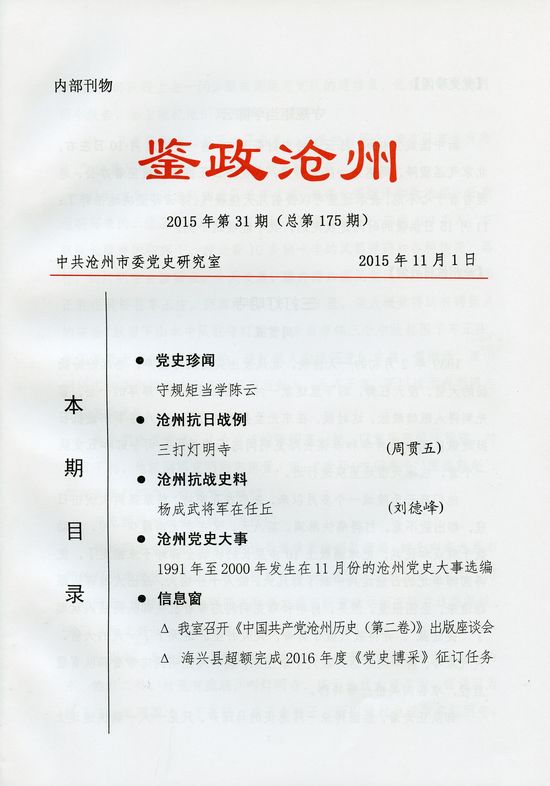 Δ 我室召开《中国共产党沧州历史(第二卷)》出版座谈会 沧州市委党史研究室编纂的《中国共产党沧州历史(第二卷)》,今年5月由中共党史出版社正式出版发行。10月14日,市委党史研究室召开《中国共产党沧州历史(第二卷)》出版座谈会,市委常委、秘书长宋有洪出席会议并讲话。