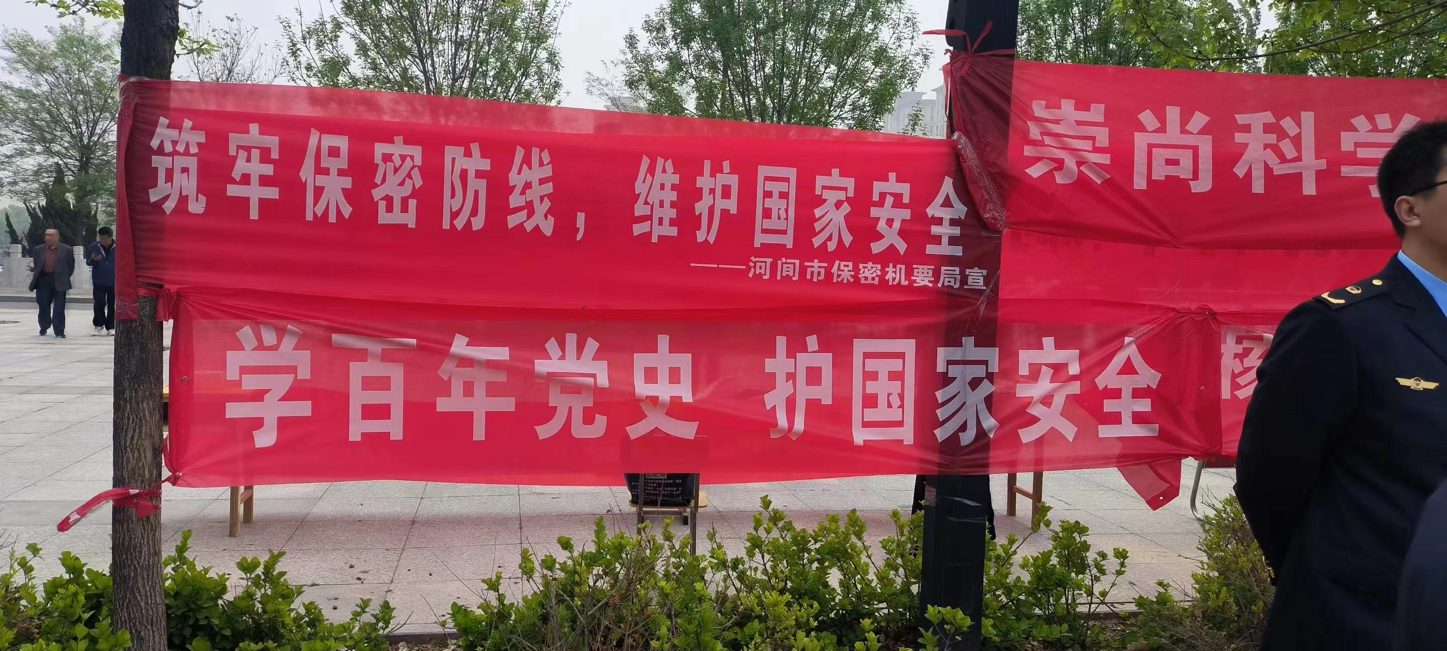 为进一步提高全市居民国家安全意识,筑牢安全工作防线,加强新时代爱国主义教育,在第九个全民国家安全教育日到来之际,河间市委党史研究室在市美术馆广场开展“学百年党史 护国家安全”主题宣传活动。