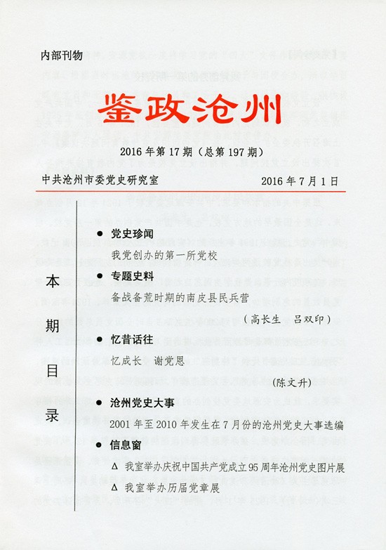 我室举办庆祝中国共产党成立95周年沧州党史图片展 6月27日,为隆重纪念中国共产党成立95周年,沧州市委党史研究室在沧州师范学院举办《光辉的旗帜》沧州党史图片展。