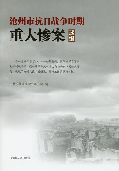 为纪念中国人民抗日战争暨世界反法西斯战争胜利71周年,缅怀死难同胞,铭记历史,珍爱和平,中共沧州市委党史研究室经过一年多的努力,精心编著的《沧州市抗日战争时期重大惨案选编》一书,日前由河北人民出版社正式出版发行,是研究抗日战争史不可或缺的重要史料。