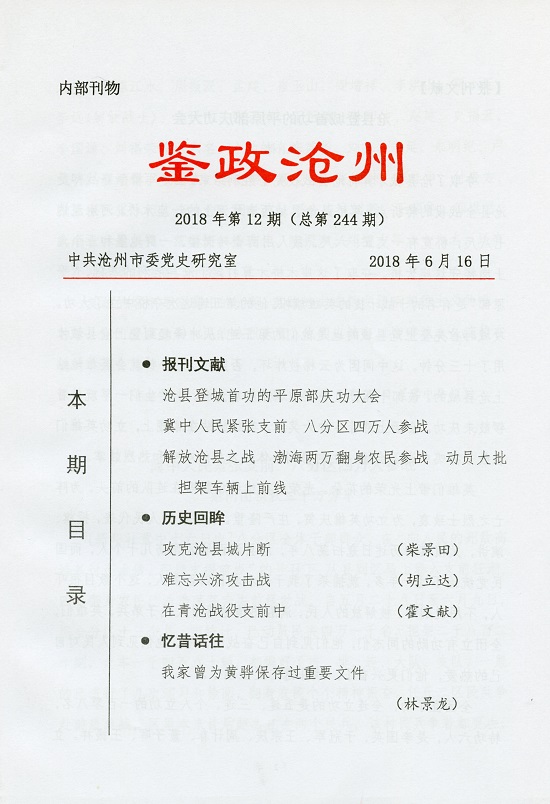 青沧战役胜利时,我在盐山(当时叫靖远)县高湾区工作,我支前大车队由王蒿生同志带领。我对全面情况不了解,只从大车队支前角度谈些片断情况。
