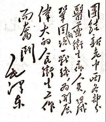 ◆毛泽东为第一届全国卫生会议题词。