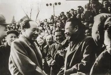 ◆毛泽东和中国中医研究院第一任院长鲁之俊亲切握手。