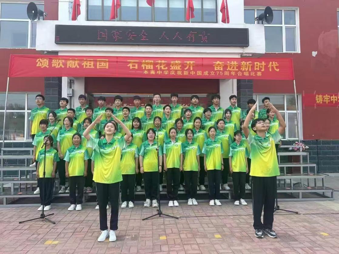 9月27日上午,献县县委党史研究室联合本斋中学举办以“颂歌献祖国 石榴花盛开 奋进新时代”为主题的合唱比赛,以歌声庆祝新中国成立75周年,表达对祖国母亲深深的热爱。
