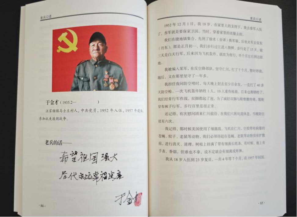 今年是中华人民共和国成立75周年,为进一步激发广大党员群众勤勉工作,锐意进取,真抓实干的工作热情,传承和发扬老一辈革命家艰苦奋斗,无私奉献的爱国主义精神,沧县县委党史史研究室联合县退役军人事务局走访抗美援朝期间81位健在老兵,面对面进行倾听,记录他们那段悲壮且光荣的参战经历,历经近一年时间完成《老兵口述》的编辑印制。