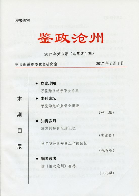 《鉴政沧州》的编发,对党的事业的价值意义和对社会教育的文化功用,大抵正在于此。