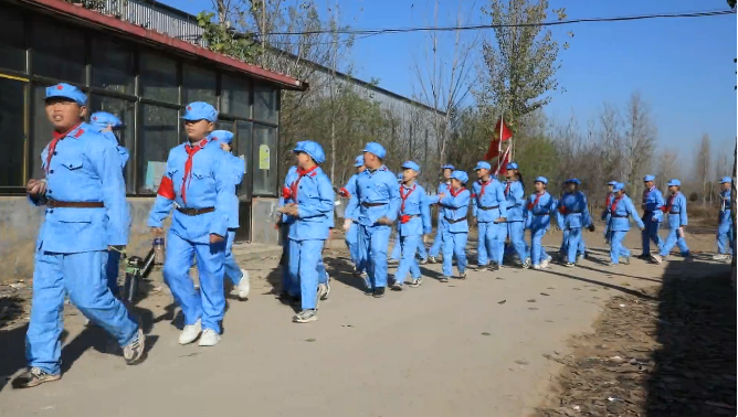 活动在沧县杜生镇袁蔡村联立小学开展,小学生们身着红军军装,化身“小红军战士”重返战争年代。按照长征重要节点,模拟长征中残酷的战争场景,重走长征路,缅怀革命先烈,接受红色精神的洗礼。