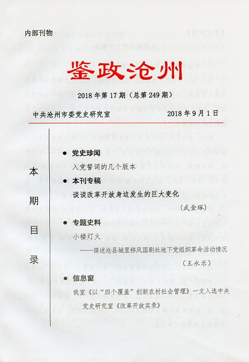 ——简述沧县城里移风国剧社地下党组织革命活动情况