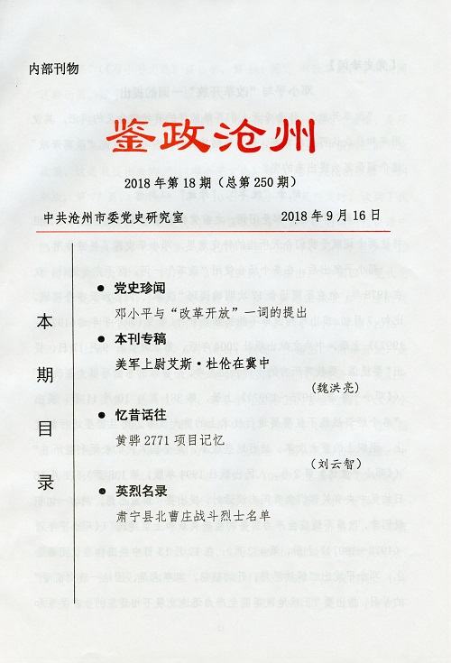 1月12日傍晚,我送走了来看地形的军区司令员杨成武同志,刚回到了分区驻地——任丘县边关村,作战科长雷溪就交给我一封军区的电报。电文大意是:美军驻延安观察组成员艾斯·杜伦上尉明日到九分区,参观了解抗战情况……要热情接待,保证安全……