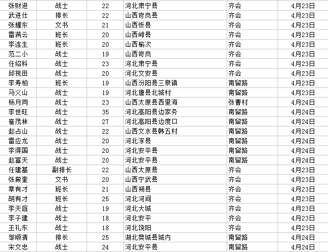 按:1939年4月23日至25日,贺龙率领八路军一二〇师在河间齐会一带,与侵华日军吉田大队连续激战3天,歼灭日军700余人,取得了平原歼灭战的一个重大胜利,是抗战期间劣势装备的八路军在日军据点稠密的平原地区歼灭敌人的经典战例,给予横行的日本侵略军以沉重打击。中共中央机关报《新中华报》发表社论《华北新胜利与贺师长光荣负伤》,庆祝齐会战斗的重大胜利。战斗中,八路军将士也付出了重大牺牲。现将齐会战斗部分英烈名单首次公布。