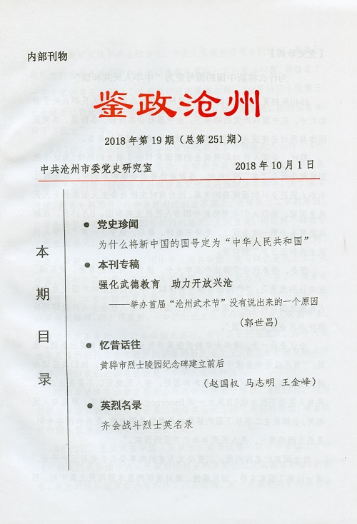 沧州市委党史研究室来信,让我写一写举办首届“沧州武术节”的一些情况。我为什么提议举办武术节,第一原因一直没有说,说了怕沧州武术界不高兴,现在说说,算是自我批评吧。沧州武术节是市政府决定举办的,暗含防止打架斗殴的建议是我强调的,至于总体策划和举办,姜树培副市长与有关部门做了大量工作,办节期间,我也只出席了开、闭幕式,好多事情并不了解,时间久了,也有记不准、想不起的,仅供参考。