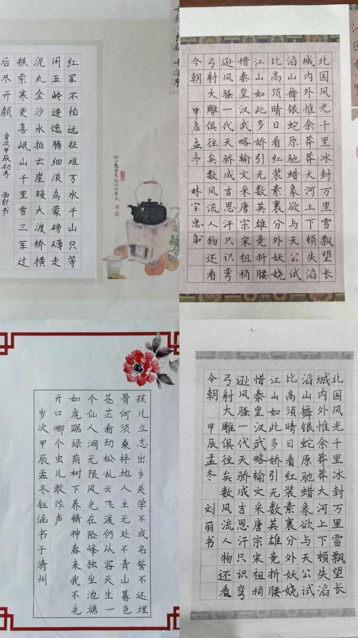全校师生通过共同临写毛泽东诗词、绘制毛泽东生平事迹和丰功伟绩的手抄报、诵伟人诗歌、讲伟人故事、观看红色电影等形式,铭记历史、缅怀先贤,感受毛泽东同志的领导魅力与为民情怀。