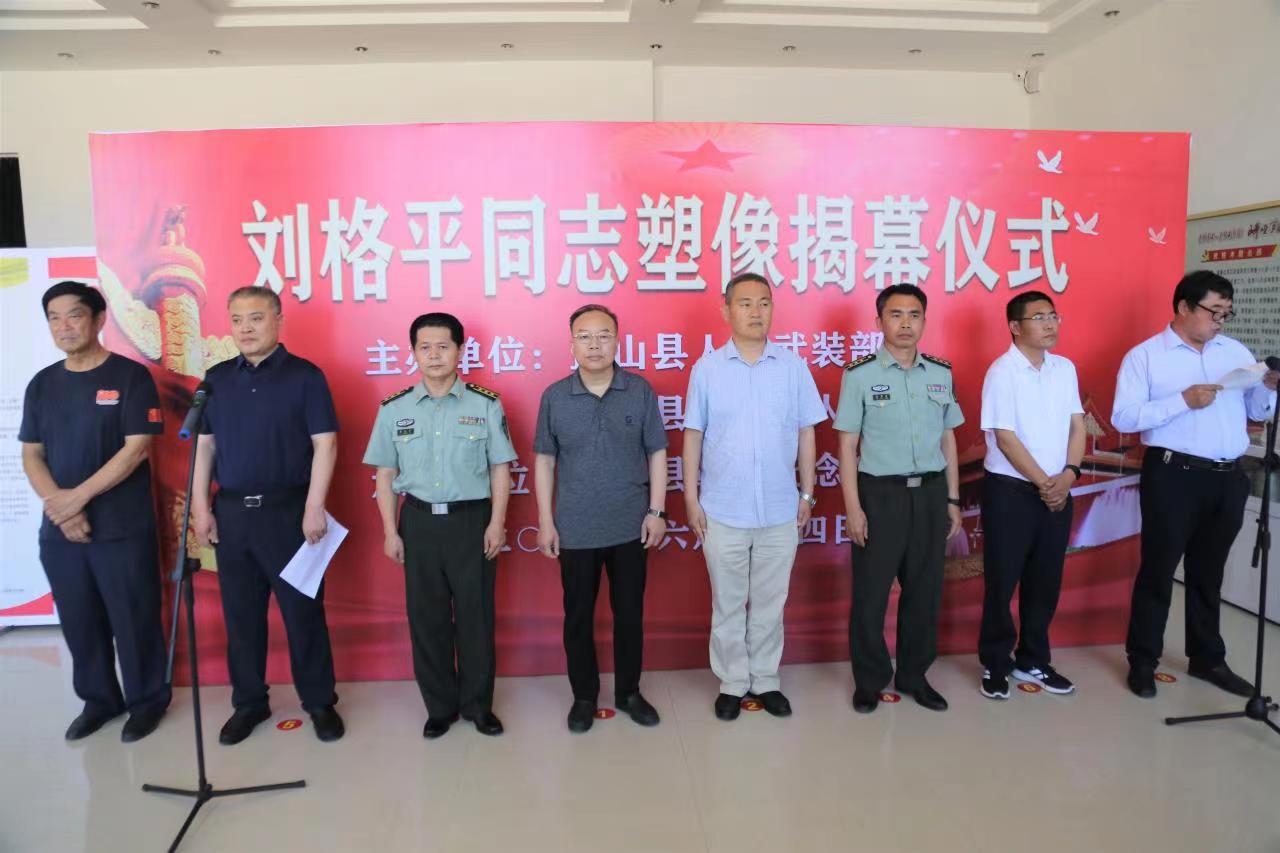 6月24日上午,刘格平同志塑像揭幕仪式在盐山县革命纪念馆举行,盐山县政府副县长、县公安局局长孙爱武主持揭幕仪式,盐山县委常委、人武部政委安沛超致辞,沧州市退役军人事务局副局长王久成,盐山县政协主席付志敏共同为刘格平塑像揭幕。