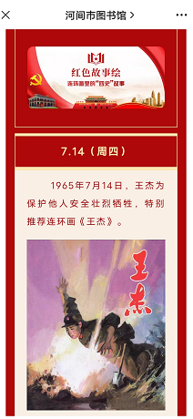 为持续推进“四史”学习教育,河间市委党史研究室联合河间市图书馆,利用河间市图书馆数字资源及宣传平台,开设了“红色故事绘——连环画里的‘四史’故事”专栏。