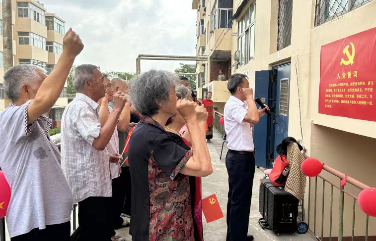 活动中,组织老党员们重温入党誓词,为老党员颁发纪念章,同时,听老党员们讲党史故事,体会宝贵的红色精神财富。