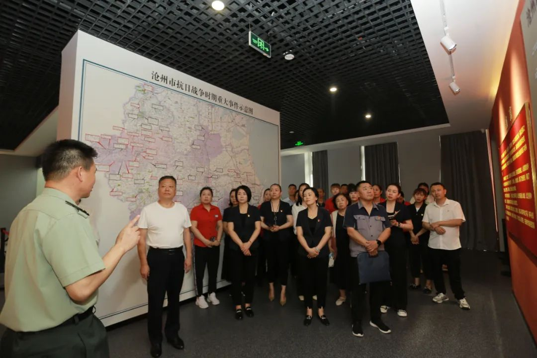 走进沧州革命军事馆,馆内的浮雕、图片、实物、珍贵文物和沙盘模型的还原,生动再现了沧州革命血与火的斗争史。参观中,大家认真听取了青县人民武装部宋凯征政委的详细讲解。通过倾听和观看,进一步了解了沧州革命军事斗争历史上的十多个具有代表性事件和人物如:青沧战役、回民支队、肖华挺进冀鲁边、马本斋、张隐韬……一场场战役故事和一张张人物雕像,展示了沧州革命画卷,让参观者全方位重温那段坎坷的革命斗争历程,接受了刻骨铭心的革命锻造和精神洗礼,更加激发了大家爱国情怀。随后,党支部书记陈玉洪带领同聚祥全体党员重温了入党誓词,重忆入党初心。大家面对鲜红的党旗,紧握右拳表达对党的庄严承诺和坚定决心。