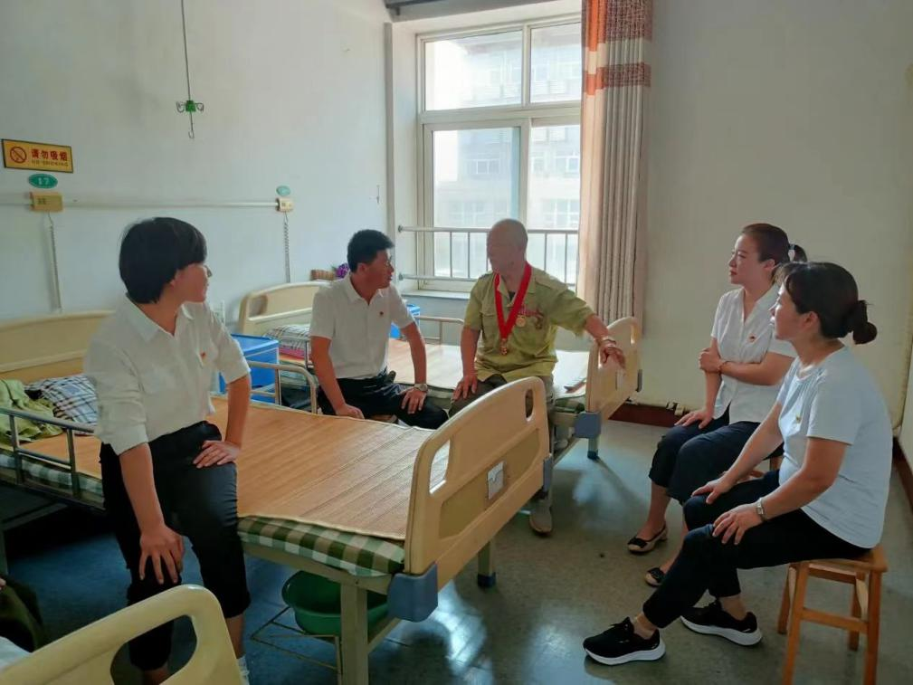 为推动党史学习教育常态化长效化,大力弘扬拥军优良传统,积极营造尊崇军人的良好氛围,在“八一”建军节即将来临之际,沧县县委党史研究室联合沧县黄递铺小学组织部分党员教师到沧州荣复军人疗养院看望疗养院内的退伍老兵,并给他们送去了慰问品和真诚的问候。