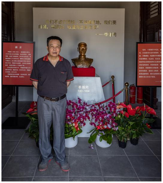 在季振同旧居,烈士家属为烈士献上鲜花,表达深切的思念之情。并同县委党史研究室进行深入交流,表示:一定要用烈士的精神激励自己和后人,愿意为弘扬革命精神贡献自己的力量。