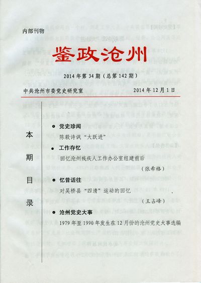 我们的工作也得到了各级领导的认可。1990年,沧州地区残疾人工作办公室,被河北省残疾人事业领导小组授予“残疾人工作先进单位”。1990年、1991年,连续两年被沧州地委、行署授予“建功立业先进单位”。