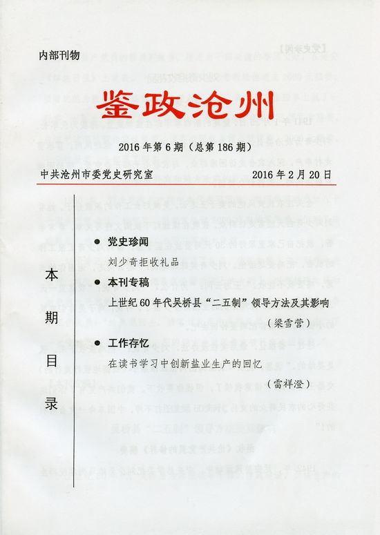 吴桥县“二五制”领导方法及其影响